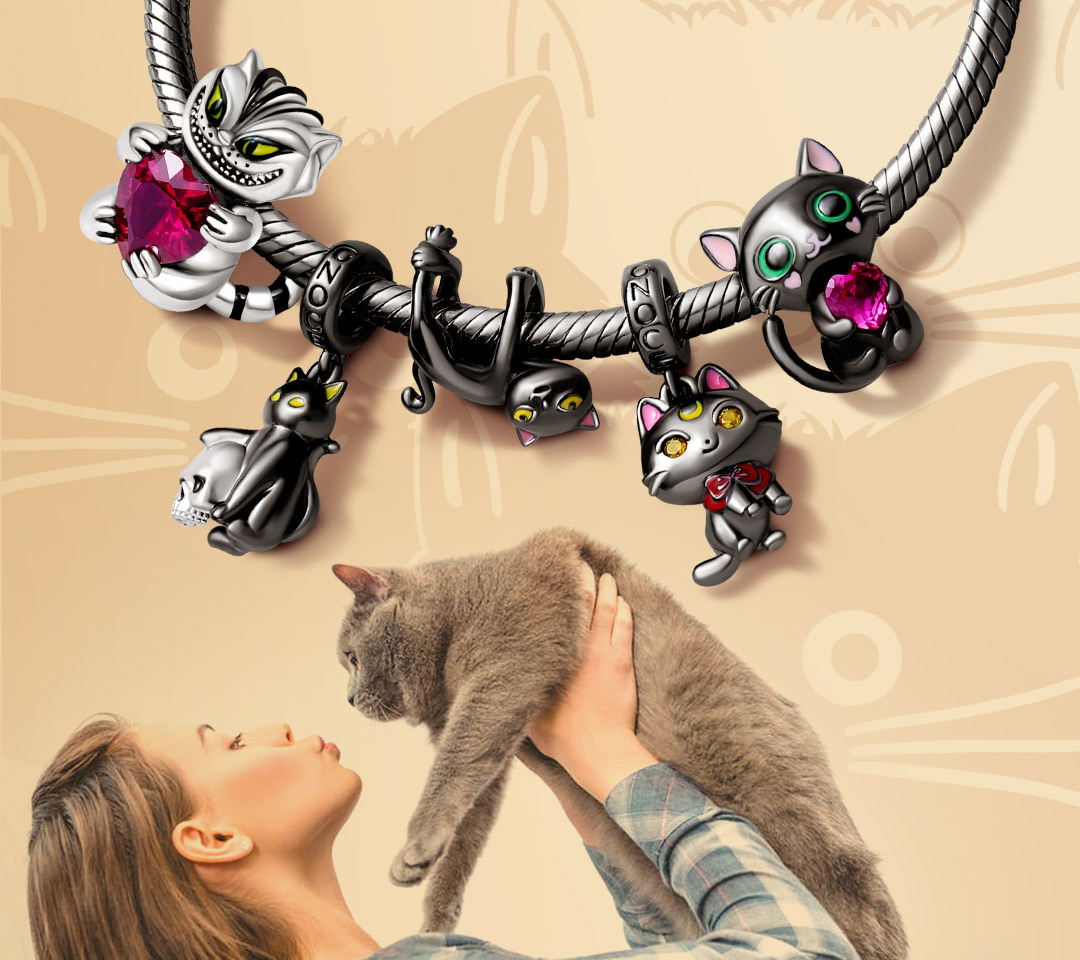 柴郡貓擁抱心形寶石珠飾