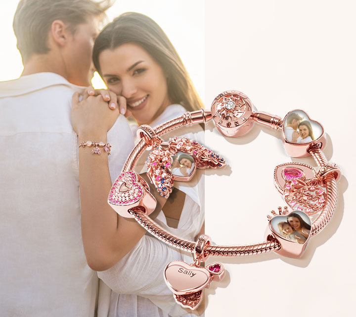 周大吉情人節高地牛情侶心形個性化照片珠飾