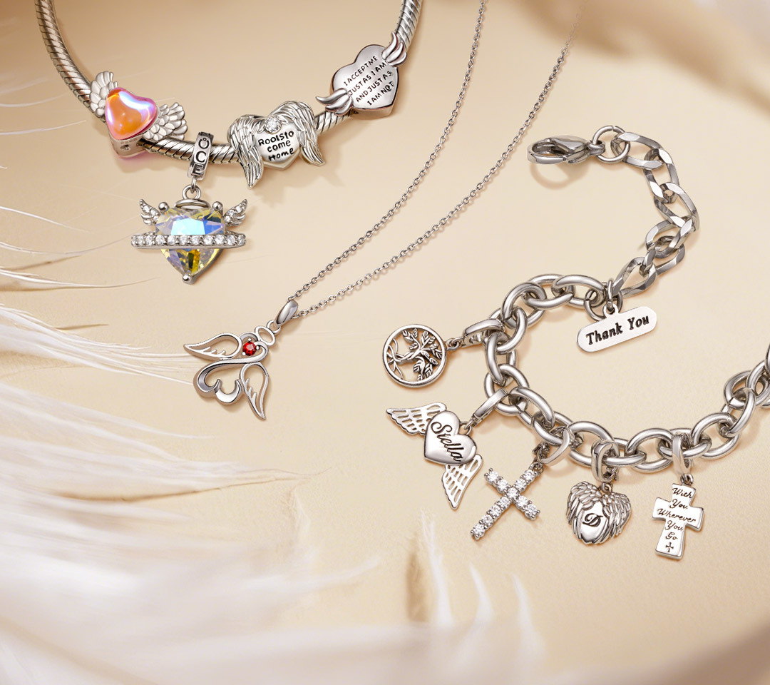 心形天使翅膀照片珠飾純銀玫瑰金吊墜
