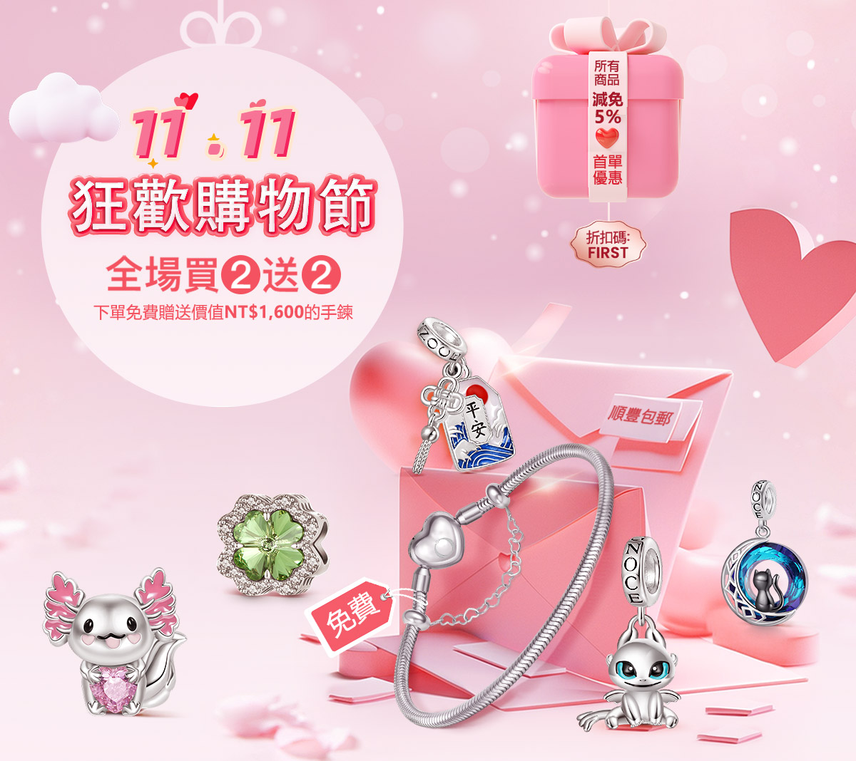 購物車內免費禮物 3選1(手鍊、項鍊或鑰匙扣)