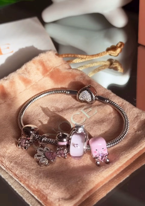 周大吉粉紅桃花珠飾