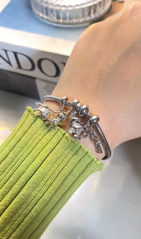 鬥牛犬珠飾純銀珠 18k 玫瑰金鍍晶鋯石
