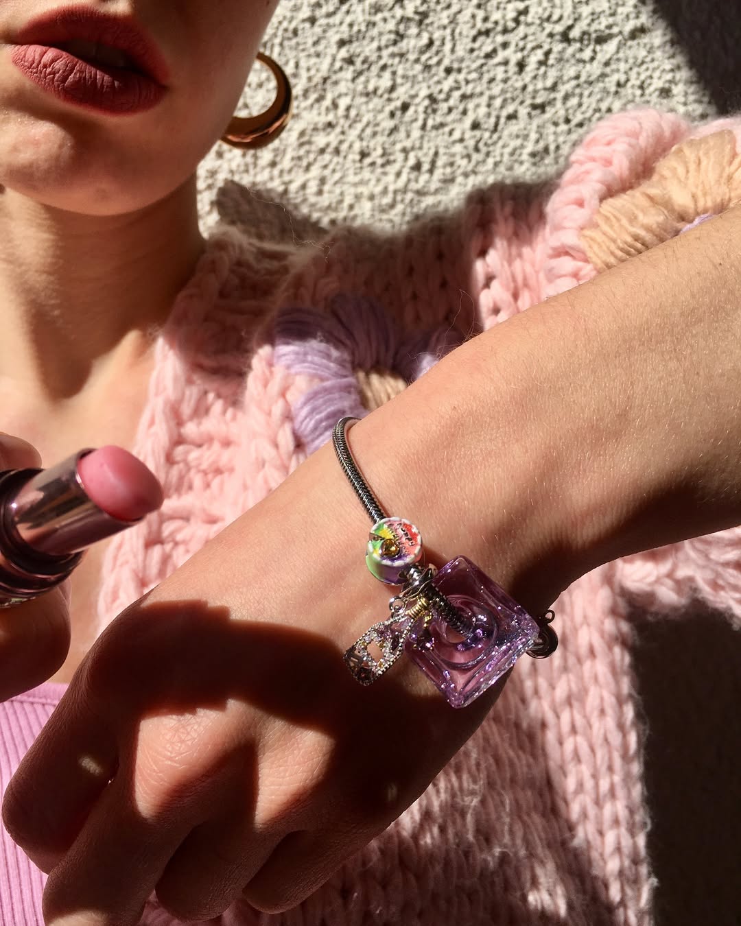 周大吉天秤座擁抱粉紅色心形寶石珠飾